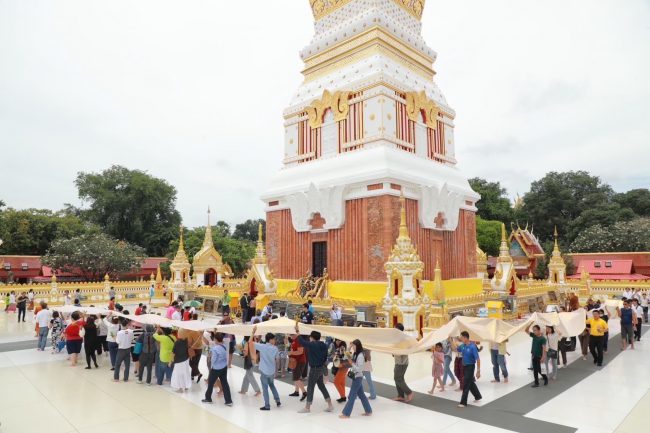 ผู้ร่วมกิจกรรมในครั้งนี้ยังได้ร่วมตักบาตรริมแม่น้ำโขงรับแสงทองของพระอาทิตย์ในยามเช้าวันถัดมา และไฮไลท์ที่สำคัญ ยังได้ไปกราบสักการะพระธาตุพนม วัดพระธาตุพนมวรมหาวิหาร ศาสนสถานอันศักดิ์สิทธิ์แห่งภาคอีสาน เป็นพระธาตุประจำวันอาทิตย์ ซึ่งภายในบรรจุพระอุรังคธาตุ (กระดูกส่วนหน้าอก) ขององค์พระสัมมาสัมพุทธเจ้าพร้อมร่วมสวดมนต์สะสมบุญ ห่มผ้าพระธาตุพนม เสริมสิริมงคลแก่ชีวิตให้เป็นผู้มีบุญบารมีตามเส้นทางสายศรัทธาแห่งนี้