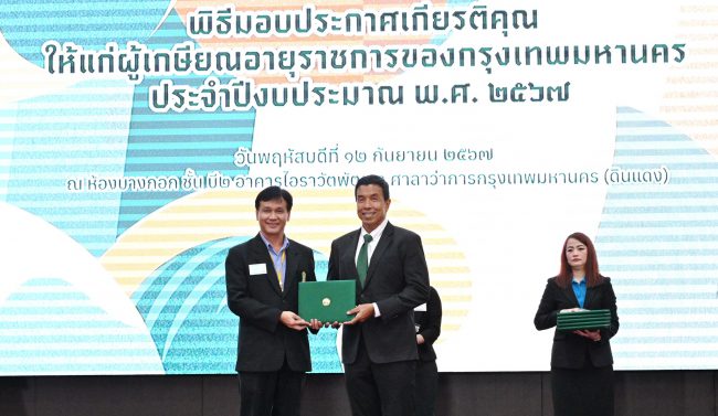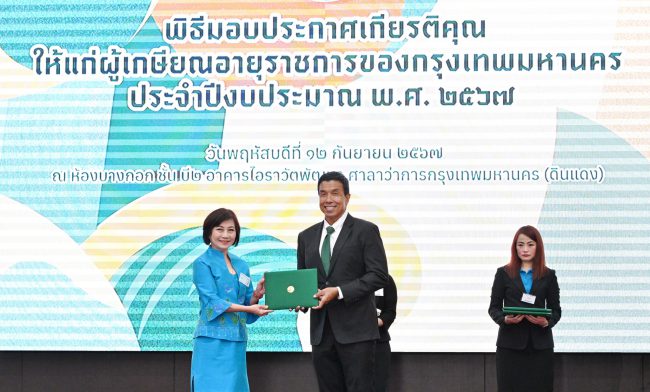 กรุงเทพมหานคร โดย สำนักงานการเจ้าหน้าที่จัดพิธีมอบประกาศเกียรติคุณให้แก่ผู้ที่เกษียณอายุราชการ ประจำปีงบประมาณ พ.ศ. 2567 ขึ้นด้วยความระลึกถึง และเพื่อเป็นเกียรติแก่ข้าราชการกรุงเทพมหานครสามัญ ข้าราชการครูและบุคลากรทางการศึกษากรุงเทพมหานคร และลูกจ้างประจำกรุงเทพมหานครที่ปฏิบัติงานในโรงเรียน ที่ปฏิบัติหน้าที่จนครบเกษียณอายุราชการด้วยความซื่อสัตย์ สุจริต ตั้งใจทุ่มเทแรงกาย แรงใจ และสติปัญญาความสามารถ ช่วยกันพัฒนางานของกรุงเทพมหานครให้เจริญก้าวหน้าตลอดระยะเวลาที่รับราชการ