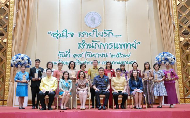 สำนักการแพทย์ กรุงเทพมหานคร จัดงาน “อุ่นใจ สายใยรัก…สำนักการแพทย์” พิธีรับโล่ผู้เกษียณอายุราชการสำนักการแพทย์ ประจำปีงบประมาณ พศ.2567 ณ ห้องปรินซ์ 2-3 ชั้น 11 โรงแรมปรินซ์พาเลซ มหานาค โดยได้รับเกียรติจาก รศ.ทวิดา กมลเวชช รองผู้ว่าราชการกรุงเทพมหานคร เป็นประธานในพิธีมอบโล่ในครั้งนี้ พร้อมด้วย พญ.วันทนีย์ วัฒนะ ปลัดกรุงเทพมหานคร นายชาตรี วัฒนเขจร รองปลัดกรุงเทพมหานคร ดร.พญ.เลิศลักษณ์ ลีลาเรืองแสง ผู้อำนวยการสำนักการแพทย์ และคณะผู้บริหารสำนักการแพทย์ ร่วมพิธีในครั้งนี้ กิจกรรมภายในงานมีการรับชมวีดีทัศน์ของผู้เกษียณอายุราชการฯ พิธีรับโล่และของที่ระลึก พร้อมกล่าวแสดงมุทิตาจิตแก่ผู้เกษียณอายุราชการฯ รับชมการแสดงจากชมรมผู้สูงอายุของโรงพยาบาลในสังกัดฯ