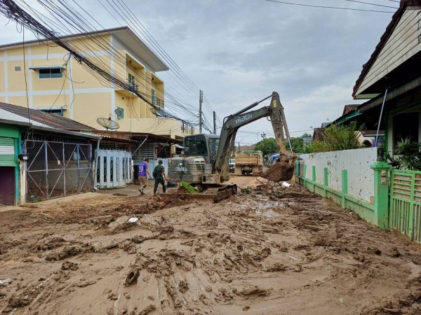 ในส่วนของการดำเนินการปรับสภาพพื้นที่ขนเศษซากขยะออกจากพื้นที่ โดย กองพันทหารช่างที่ 4 กองพลทหารราบที่ 4 กองพันทหารช่างที่ 8 กองพลทหารม้าที่ 1 และกองพันทหารช่างที่ 302 กรมทหารช่างที่ 3 บูรณาการร่วมกันปรับสภาพพื้นที่ ขนเศษซากขยะ ดินโคลนบริเวณ ถ.ปิยะพร 3 (V) ระยะทางรวม 640 ม.ขนเศษซากขยะไปทิ้งจำนวน 27 เที่ยว