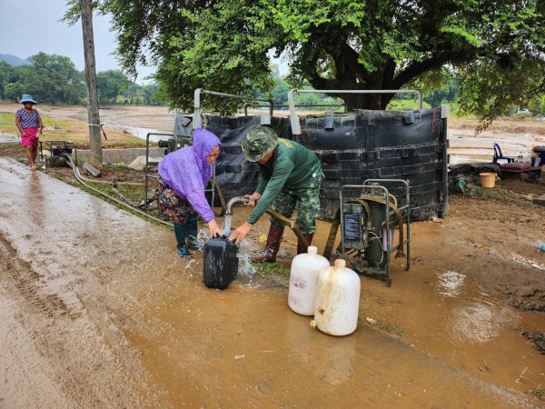 วันที่ 22 กันยายน 2567 ศูนย์บรรเทาสาธารณภัยกองทัพภาคที่ 3 โดย กองพลพัฒนามี่ 3 จัดกำลัง พร้อมยุทโธปกรณ์ ดำเนินการตั้งตำบลประปาสนามเพื่อแจกจ่ายน้ำ เพื่อการอุปโภค จำนวน 3 แห่ง 1.งานส่งน้ำและบำรุงรักษาที่ 5 ตำบลแม่สาย โดย กองพันทหารช่างที่ 4 กองพลทหารราบที่ 4 แจกจ่ายน้ำให้กับประชาชนจำนวน 18,0]0 ลิตร 2.ชุมชนเหมืองแดง โดยกองพันทหารช่างที่ 8 กองพลทหารม้าที่ 1 แจกจ่ายน้ำให้กับประชาชนจำนวน 24,000 ลิตร 3. มูลนิธิสยามรวมใจ (กู้ภัยสยาม) ดำเนินการโดยกองพันทหารช่างที่ 302 กรมทหารช่างที่ 3 สามารถแจกจ่ายน้ำจำนวน 18,000 ลิตร