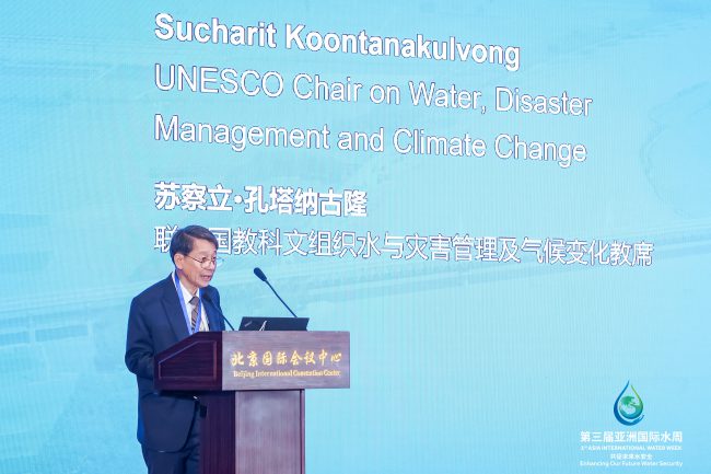 รศ. ดร.สุจริต คูณธนกุลวงศ์ ผู้อำนวยการแผนงานการนำผลงานวิจัยไปสู่การใช้ประโยชน์ ด้านการบริหารจัดการน้ำ สำนักงานการวิจัยแห่งชาติ (วช.) เปิดเผยว่า ตนได้รับเชิญให้เข้าร่วมรับฟังและแสดงความคิดเห็นในการประชุมสัปดาห์น้ำสากลแห่งเอเชีย ครั้งที่ 3 ระหว่างวันที่ 23-26 กันยายน 2567 ณ กรุงปักกิ่ง สาธารณรัฐประชาชนจีน โดยมีรัฐมนตรีช่วยว่าการกระทรวงทรัพยากรน้ำของจีนเป็นประธานในพิธีเปิด ซึ่งมีผู้นำประเทศเข้าร่วมกว่า 10 ประเทศ พร้อมองค์กรและสมาคมวิชาชีพระหว่างประเทศ เพื่อลงนามในประกาศเจตนารมย์ปักกิ่งในความร่วมมือระหว่างประเทศจีนกับสภาน้ำเอเชีย (Asia Water Council) ที่จะใช้แบบอย่างจากจีนถ่ายทอดไปยังประเทศสมาชิกในทวีปเอเชียซึ่งมีคนเข้าร่วมกว่า 1,000 คน หลังจีนออกนโยบายด้านน้ำในปี 2014