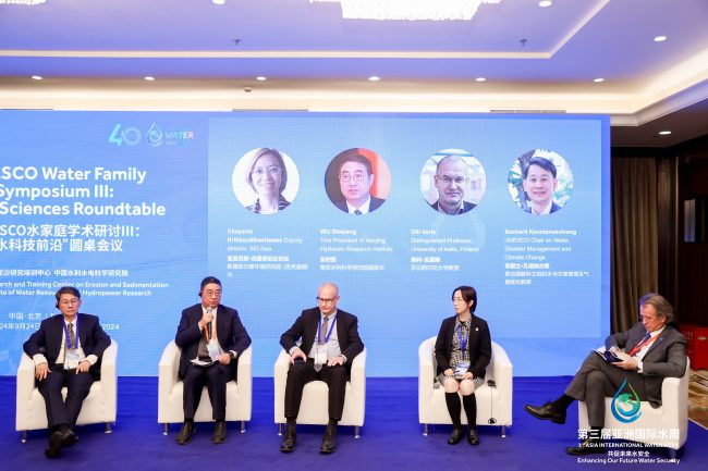 ภายในงานเดียวกันทางเจ้าภาพได้จัดการประชุมโต๊ะกลมวิทยาการด้านน้ำขององค์การเพื่อการศึกษา วิทยาศาสตร์ และวัฒนธรรมแห่งสหประชาชาติ (UNESCO) และเครือข่ายด้านน้ำ ในโอกาสนี้ รศ. ดร.สุจริต ได้กล่าวแสดงความยินดี และนำเสนองานวิจัยในกลุ่มนโยบายน้ำ เรื่อง “การสนับสนุนเสริมความมั่นคงด้านน้ำโดยนวัตกรรมในพื้นที่เขตพัฒนาพิเศษภาคตะวันออก (EEC) ซึ่งเป็นผลงานจากแผนงานวิจัยเข็มมุ่งด้านการบริหารจัดการน้ำ ภายใต้การสนับสนุนทุนวิจัยจากสำนักงานคณะกรรมการส่งเสริมวิทยาศาสตร์ วิจัยและนวัตกรรม (สกสว.) และสำนักงานการวิจัยแห่งชาติ (วช.) พร้อมรับฟังตัวอย่างการแก้ไขปัญหาเขาหัวโล้นของจีที่สำเร็จและใช้เวลานานกว่า 20 ปี โดยประเด็นที่นำเสนอจะเป็นส่วนหนึ่งในการพิจารณคัดเลือกเป็นบทความลงใน UNESCO Water Science Report ปี 2025
