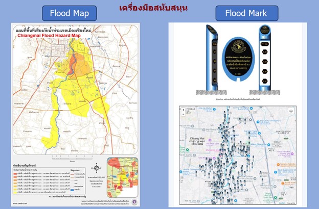 ขณะที่ รศ. ดร.สุทธิศักดิ์ ศรลัมพ์ อาจารย์ประจำคณะวิศวกรรมศาสตร์ มหาวิทยาลัยเกษตรศาสตร์ เปิดเผยว่า การปรับปรุงระบบเตือนภัยและบริหารจัดการน้ำต้องอาศัยการมีส่วนร่วมจากชุมชน โดยมีภาควิชาการเข้าไปช่วยเหลือ ชุมชนต้องแข็งแรงและมีความรู้ ไม่เน้นเทคนิคมากมายแต่เน้นการพัฒนาชุมชนให้มีระบบเตือนภัยฐานชุมชน ซักซ้อมเพื่อช่วยเหลือกันเอง รวมถึงสนับสนุนปราชญ์ชุมชนด้านภัยพิบัติ และพร้อมรับข้อมูลจากวิทยาการภายนอกเข้าเสริม เช่นเดียวกับ รศ. ชูโชค อายุพงศ์ หัวหน้าศูนย์วิชาการสนับสนุนด้านการบริหารจัดการน้ำ มหาวิทยาลัยเชียงใหม่ กล่าวถึง ระบบเตือนภัยน้ำท่วมสำหรับพื้นที่เสี่ยงสูงต้องเริ่มมาจากการพยากรณ์น้ำล่วงหน้าที่แม่นยำและมีเวลามากพอ มีเครื่องมือสนับสนุนให้ประชาชนตะหนักถึงความลึกของระดับน้ำท่วมที่จะเกิดขึ้นในบริเวณต่าง ๆ โดยเครื่องที่ทำได้ก่อนใช้งบประมาณและเวลาไม่มาก ได้แก่ แผนที่เสี่ยงภัยน้ำท่วมและหมุดหมายระดับน้ำท่วมครอบคลุมพื้นที่น้ำท่วม ซึ่ง อว. สามารถสนับสนุนองค์ความรู้ให้ภาคส่วนต่าง ๆ ได้