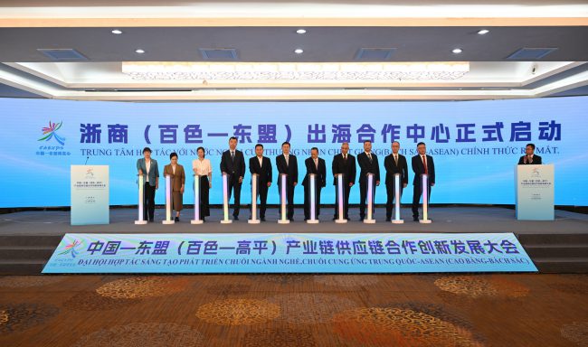ในการประชุมครั้งนี้ ศูนย์ความร่วมมือต่างประเทศของนักธุรกิจเจ้อเจียง (ไป่เซ่อ-อาเซียน) ซึ่งริเริ่มร่วมกันโดยศูนย์สนับสนุนความเป็นผู้ประกอบการและนวัตกรรมของนักธุรกิจเจ้อเจียงแห่งมณฑลเจ้อเจียง สภาหอการค้าเวียดนามในจีน และสหพันธ์อุตสาหกรรมและการพาณิชย์เทศบาลเมืองไป่เซ่อ ได้เปิดตัวอย่างเป็นทางการ โดยศูนย์แห่งนี้จะใช้ประโยชน์จากข้อได้เปรียบหลายประการของเมืองไป่เซ่อในฐานะผู้นำการเปิดกว้าง ศูนย์กลางการขนส่ง และคลัสเตอร์อุตสาหกรรม เพื่อส่งเสริมการแลกเปลี่ยนและความร่วมมือที่ลึกซึ้งยิ่งขึ้นระหว่างวิสาหกิจจีนและเวียดนาม ช่วยให้ทั้งสองฝ่ายสามารถแบ่งปันโอกาส ส่งเสริมการเติบโตร่วมกัน และจับมือกันรุกเข้าสู่ตลาดต่างประเทศ