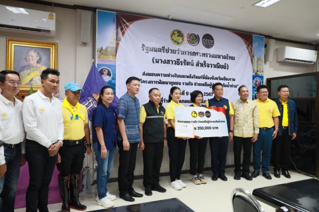 นางสาวธีรรัตน์ สำเร็จวาณิชย์ รัฐมนตรีช่วยว่าการกระทรวงมหาดไทย กล่าวว่า ในสภาวะปกติกรมการพัฒนาชุมชนก็ได้ดำเนินการมอบทุนเหล่านี้ ให้แก่พี่น้องในพื้นที่ต่าง ๆ อย่างต่อเนื่องมาโดยตลอด ด้วยพระบรมราชานุเคราะห์ของ สมเด็จพระเทพรัตนราชสุดาฯ สยามบรมราชกุมารี ท่านทรงมีเมตตาให้เราได้นำกองทุนที่มีอยู่มาใช้ให้เกิดประโยชน์สูงสุด ซึ่งกิจกรรมในวันนี้เกิดขึ้นได้ด้วยความร่วมไม้ร่วมมือของทุกคน โดยหลังจากเกิดภัยพิบัติขึ้น ทางด้าน พลเอก ณัฐพล นาคพาณิชย์ รัฐมนตรีช่วยว่าการกระทรวงกลาโหม ก็ได้สั่งการให้กำลังพลต่างๆ เข้ามาให้การช่วยเหลือผู้ประสบภัยอย่างรวดเร็ว สำหรับในวันนี้เราทุกคนก็ได้มามอบทุนในการช่วยเหลือเบื้องต้นให้กับครอบครัวที่ประสบเหตุอุทกภัยในพื้นที่เชียงราย และก็จะมอบให้ถึงมือพี่น้องทุกครอบครัวที่ประสบภัยให้ครอบคลุมและทั่วถึงมากที่สุด
