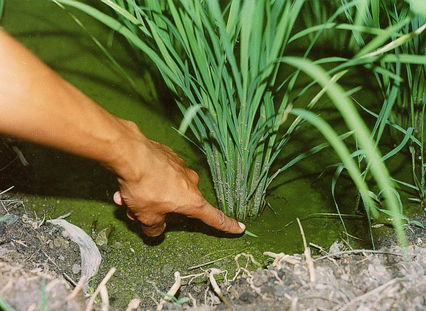 โดยเฉพาะ “ปุ๋ยชีวภาพจากสาหร่ายสีน้ำเงินแกมเขียว” จะนิยมนำไปใช้กับนาข้าว เพื่อทดแทนการใช้ปุ๋ยไนโตรเจน ซึ่งในสภาพพื้นที่ทำการเกษตรที่ถูกน้ำท่วมขัง แล้วระดับน้ำลดลงจนเหลือเพียง 10 – 20 เซนติเมตร จะมีความชุ่มชื้นและมีสารอินทรีย์ต่างๆ อยู่มาก ซึ่งเป็นสภาพที่เหมาะสมอย่างยิ่งต่อการเจริญเติบโตของสาหร่ายสีน้ำเงินแกมเขียว