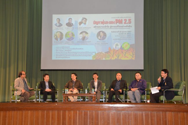 วันที่ 22 ตุลาคม 2567 สมาคมสื่อมวลชนเกษตรแห่งประเทศไทย ร่วมกับ มหาวิทยาลัยเกษตรศาสตร์ จัดเสวนา “ปัญหาฝุ่นละออง PM 2.5 สร้างความเข้าใจ สู่การแก้ไขอย่างยั่งยืน” ระดมความคิดนักวิชาการ ให้ความรู้ สร้างความเข้าใจที่ถูกต้อง สะท้อนปัญหาเกี่ยวกับปัญหาหมอกควันพิษ และฝุ่นละอองขนาดเล็ก (PM 2.5) ให้กับสังคม ส่งเสริมให้เกิดแนวทางและวิธีการแก้ปัญหาในอนาคตอย่างแม่นยําและยั่งยืน