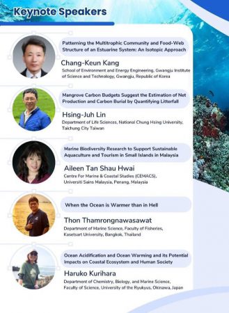 การประชุมวิชาการฯ ครั้งนี้ได้รับเกียรติจากนักวิทยาศาสตร์รับเชิญชั้นนำเป็นวิทยากรบรรยายหลัก (Keynote Speaker) ในประเด็นสำคัญของโลก จำนวน 5 ท่าน ได้แก่ Professor Chang-Keun Kang (Republic of Korea) / Professor Hsing-Juh Lin (Taiwan) / Professor Aileen Tan Shau Hwai (Malaysia) / Dr. Thon Thamrongnawasawat (Thailand) / Professor Haruko Kurihara (Japan)