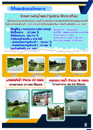 กรมชลประทานเดินหน้าปรับปรุงเพิ่มประสิทธิภาพโครงการส่งน้ำและบำรุงรักษาโคกกระเทียมและเริงราง จังหวัดลพบุรี จังหวัดสระบุรี แก้ปัญหาน้ำท่วมน้ำแล้งอย่างยั่งยืน เพิ่มน้ำต้นทุนให้กับพื้นที่ ในช่วงฤดูฝน 15,400 ไร่ และช่วงฤดูแล้ง 9,600 ไร่ ช่วยบรรเทาปัญหาอุทกภัยและการระบายน้ำ พื้นที่น้ำท่วมในพื้นที่กว่า 9 หมื่นไร่ โดยกรมชลประทานได้จัดปัจฉิมนิเทศ โครงการศึกษาความเหมาะสมปรับปรุง โครงการส่งน้ำและบำรุงรักษา โคกกะเทียมและเริงราง ในเขตลพบุรี สระบุรี โดยมีนายรัฐพล ธุระพันธ์ นายอำเภอเมืองลพบุรี เป็นประธานการประชุมปัจฉิมนิเทศฯ และ นายทินกร รัตนพัวพันธ์ ผู้อำนวยการโครงการส่งน้ำและบำรุงรักษาโคกกระเทียม เข้าร่วมงาน ณ ห้องประชุมสำนักงานชลประทานที่ 10 ต.เขาพระงาม อ.เมืองลพบุรี จ.ลพบุรี