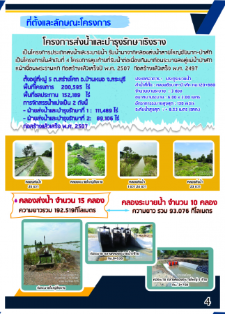 นายไชยวัฒน์ คุณวัฒนานนท์ ผู้อำนวยการโครงการส่งน้ำและบำรุงรักษาเริงราง กล่าวถึงโครงการส่งน้ำและบำรุงรักษาเริงรางว่า มีแผนงานปรับปรุงโครงการที่สำคัญ ประกอบด้วย แผนการปรับปรุงระบบคลองส่งน้ำและระบบคลองระบายน้ำ โดยการปรับปรุงซ่อมแซมอาคารชลประทาน 187 แห่ง ถนนคันคลอง 195.25 กิโลเมตร คลองส่งน้ำ 96.66 กิโลเมตร ขุดลอกตะกอนคลองระบายน้ำรวม 1.03 ล้าน ลบ.ม. ซ่อมแซมถนนคันคลองระบาย 0.55 ล้าน ตร.ม. แผนบรรเทาอุทกภัยและการระบายน้ำ โดยการปรับปรุง ปตร.บางกุ่ม โดยเพิ่มบานระบาย ขนาด 6×7 ม.จำนวน 3 ช่อง พร้อมก่อสร้างสถานีสูบน้ำ ขนาด 4.00 ลบ.ม./วินาที จำนวน 3 เครื่อง สำรอง 1 รวมทั้งการปรับปรุงขุดลอกคลองระบายสายสำคัญในพื้นที่ อาทิเช่น คลองบางพระครู คลองระบาย 3 ซ้าย-ลพบุรี และคลองระบาย 4-9 ซ้าย-เริงราง ความยาวรวม 57.45 กิโลเมตร , แผนการปรับปรุงแก้มลิงที่สำคัญในพื้นที่ 2 แห่ง ประกอบด้วย แก้มลิงทะเลสาปบ้านหมอ พื้นที่ 1,738.40 ไร่ และพัฒนาบริเวณคลองระบายใหญ่เริงราง กม. 29+700 พื้นที่ 160 ไร่ เพื่อช่วยบรรเทาปัญหาขาดแคลนน้ำในฤดูแล้ง , แผนพัฒนาพื้นที่ลุ่มต่ำบางกุ่ม ด้วยการลอกตะกอนดินในคลองระบายน้ำและปรับปรุงคันกั้นน้ำ และปรับปรุงอาคารประกอบที่สำคัญ ดังนี้ ก่อสร้างท่อระบายปากคลอง ร.4 ซ้าย-เริงราง และปากคลอง ร.1ข-4ซ เริงราง ก่อสร้างประตูระบายน้ำที่สำคัญดังนี้ ปตร.ดอนพุด ปตร.บางมน ปตร.บางเพลิง และ ปตร.เกาะเลิ่ง