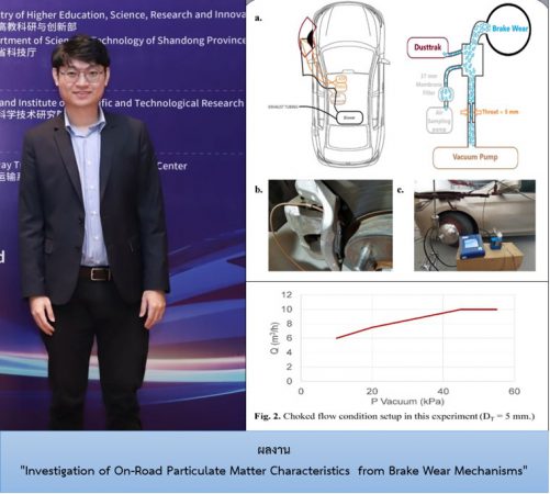 2) ประเภทวิทยานิพนธ์ สาขาวิศวกรรมศาสตร์และอุตสาหกรรมวิจัย ได้แก่ ดร.วรวัฒน์ ทรงกิตติ นักวิชาการ ศูนย์ทดสอบมาตรฐานระบบขนส่งทางราง (ศทร.) จากผลงาน “Investigation of On-Road Particulate Matter Characteristics from Brake Wear Mechanisms” ซึ่งเป็นการศึกษาเกี่ยวกับการวิเคราะห์ลักษณะและปัจจัยที่มีผลต่อการปล่อยอนุภาคในละอองจากการเบรกยานยนต์ในสภาพการขับขี่จริง โดยใช้เทคนิคการเก็บตัวอย่างแบบไอโซคิเนติก (Isokinetic Sampling) ซึ่งช่วยเพิ่มความแม่นยำในการวัดค่าอนุภาค พร้อมทั้งวิเคราะห์ผลกระทบจากอุณหภูมิการเบรกและปัจจัยต่างๆ ที่มีผลต่อปริมาณฝุ่นละออง