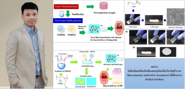 1) ประเภทวิทยานิพนธ์ สาขาวิทยาศาสตร์เคมีและเภสัช ได้แก่ ดร.สิทธิพงศ์ สรเดช นักวิจัย ศูนย์เชี่ยวชาญนวัตกรรมผลิตภัณฑ์สมุนไพร (ศนส.) จากผลงาน “โพลิเอทิลเลนิมีนเชิงเส้นและอนุพันธ์เพื่อเป็นวัสดุชีวภาพ (Biomaterials) และสารช่วย (Excipients) ที่มีศักยภาพสำหรับการนำส่งยา” (Linear Polyethyleneimine and Derivatives as Potential Biomaterials and Excipients for Drug Delivery)