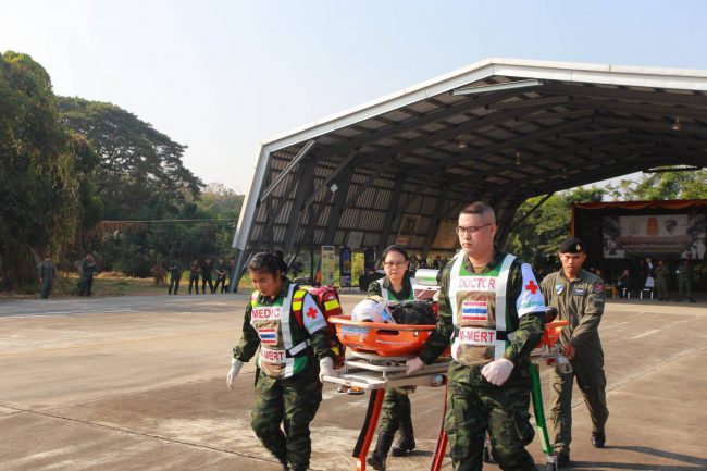 ก่อนจะทำการฝึกทบทวนการปฏิบัติ การส่งต่อผู้ป่วยวิกฤต เเละฉุกเฉิน เเบบ Dynamic โดย ฮ.ท.145 AirAmbulance ในวันที่ 8 มกราคม เป็นการปิดท้ายการฝึก