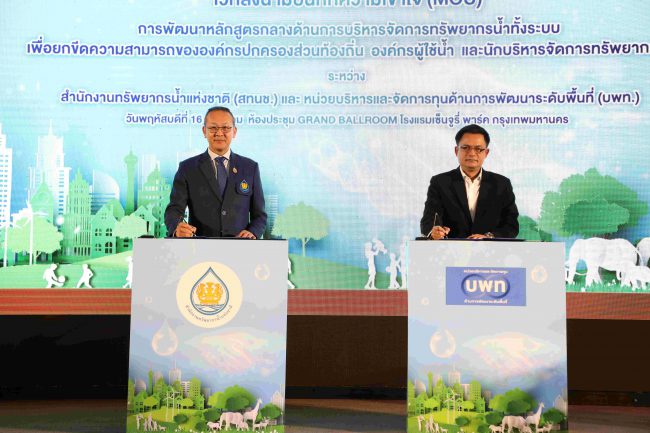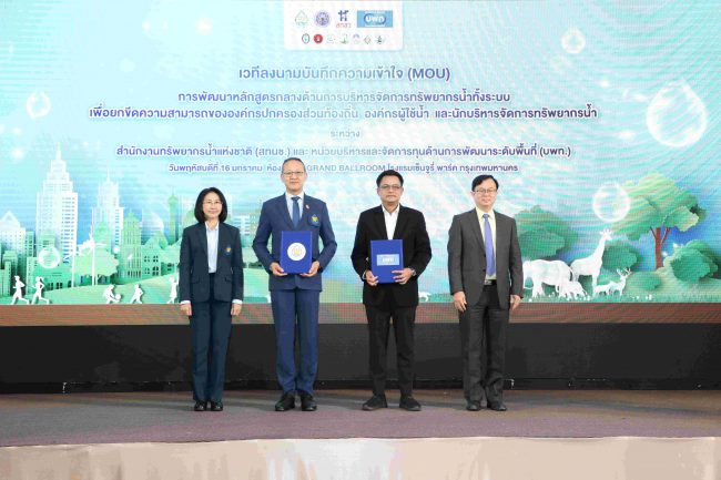 • 2 หน่วยงาน สทนช.-บพท. ลงนามบันทึกความเข้าใจพัฒนาหลักสูตรสร้างนักบริหารจัดการน้ำระดับท้องถิ่น คาดหวังให้มีขีดความสามารถบริหารจัดการ ด้านพัฒนาคุณภาพน้ำ พร้อมสู้ภัยพิบัติน้ำท่วม-น้ำแล้ง ด้วย 3 ชุดความรู้