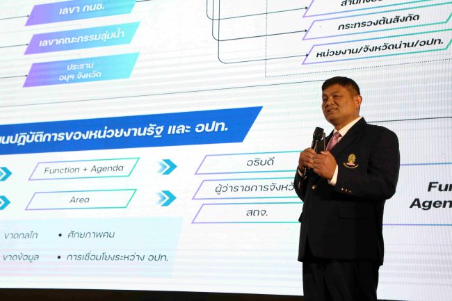 ทั้งนี้ องค์กรปกครองส่วนท้องถิ่นจำเป็นต้องใช้ข้อมูลที่แม่นยำด้านน้ำ ผังน้ำ บริบทของพื้นที่ภูมิปัญญาพื้นถิ่น และเทคโนโลยีนวัตกรรมที่เหมาะสมในการบริหารจัดการน้ำ และกลไกการมีส่วนร่วมจากทุกภาคส่วน การเสริมสร้างขีดความสามารถของ อปท. ให้เป็นองค์กรที่มีสมรรถนะสูงในการบริหารจัดการน้ำครบวงจร จึงเป็นเป้าหมายสำคัญที่ บพท. ต้องการผลักดันให้เกิดขึ้นผ่านการขับเคลื่อนด้วยข้อมูลความรู้และนวัตกรรมจากเครือข่ายมหาวิทยาลัยในพื้นที่ และดำเนินการร่วมกับภาคีทุกภาคส่วนในระบบบริหารจัดการทรัพยากรน้ำของประเทศไทย