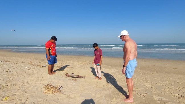 วันที่ 16 ม.ค. 68 นายพรหมสิงห์ สิงหเสนี อาสาสมัครอนุรักษ์พิทักษ์สิ่งแวดล้อมทะเลปราณบุรี ได้รับแจ้งจากนักท่องเที่ยวว่า พบซากลูกโลมาหัวบาตรลอยมาเกยหาดปราณบุรี หน้าบิวตี้บีช รีสอร์ท ต.ปากน้ำปราณ อ.ปราณบุรี จ.ประจวบคีรีขันธ์ จึงประสานเจ้าหน้าที่ศูนย์วิจัยทรัพยากรทางทะเลและชายฝั่งอ่าวไทยตอนบน (สมุทรสาคร) และเจ้าหน้าที่อาสาสมัครหน่วยกู้ภัยมูลนิธิสว่างแผ่ไพศาลธรรมสถานปราณบุรี รุดมาตรวจสอบ