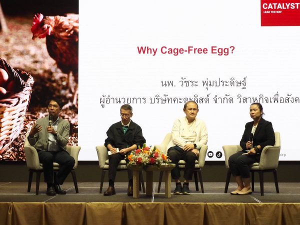 ปัจจุบัน การเลี้ยงไก่แบบไม่ใช้กรงกำลังได้รับความสนใจมากขึ้นจากธุรกิจระดับโลก โดยเฉพาะในกลุ่มโรงแรมระดับนานาชาติและซูเปอร์มาร์เก็ตที่เริ่มปรับเปลี่ยนนโยบายเพื่อลดการใช้ไข่จากไก่ที่ถูกเลี้ยงในกรง และมีบริษัทกว่า 200 แห่งทั่วโลก ที่กำหนดเป้าหมายเปลี่ยนมาใช้ไข่เคจฟรี บริษัท คะตะลิสต์ จำกัด วิสาหกิจเพื่อสังคม ทำหน้าที่เป็นตัวกลางเชื่อมโยงระหว่างผู้ผลิต ผู้ซื้อ และผู้ขายไข่ไก่จากระบบการเลี้ยงแบบไม่ใช้กรง พร้อมให้คำแนะนำแก่เกษตรกรเกี่ยวกับแนวทางการเปลี่ยนผ่าน ตั้งแต่เทคนิคการเลี้ยงไก่ไปจนถึงการเข้าถึงตลาดที่มีศักยภาพ