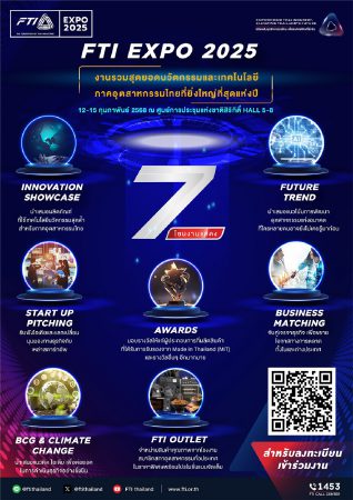 “FTI EXPO 2025 ภายใต้ธีม “EMPOWERING THAI INDUSTRY, ELEVATING THAILAND’S FUTURE เสริมพลังอุตสาหกรรมไทยเพื่ออนาคตที่ยั่งยืน” จะเป็นโอกาสครั้งสำคัญสำหรับผู้ประกอบการไทยที่จะได้ขยายช่องทางการตลาดทั้งในและต่างประเทศ เชื่อมเครือข่ายธุรกิจจากทั่วโลก เปิดมุมมองใหม่ๆ กับนวัตกรรมและเทคโนโลยีล้ำสมัย แลกเปลี่ยนความรู้ที่เป็นประโยชน์กับเวทีเสวนาโดยกูรูทั้งระดับประเทศและระดับโลกที่มากด้วยคุณวุฒิและประสบการณ์ในด้านต่างๆ รวมถึงโซน FTI OUTLET ที่ให้ผู้เข้าร่วมได้มีโอกาสซื้อผลิตภัณฑ์คุณภาพจากสมาชิกของสภาอุตสาหกรรมแห่งประเทศไทยทั่วประเทศในราคาสุดพิเศษ ทั้งหมดจะมีพร้อมในงานนี้บนพื้นที่การจัดงานกว่า 20,000 ตารางเมตร”