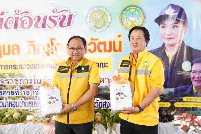วันที่ 18 ก.พ. 68 ณ แปลงใหญ่มะพร้าวน้ำหอม อ.สทิงพระ จ.สงขลา ศ.ดร.นฤมล ภิญโญสินวัฒน์ รัฐมนตรีว่าการกระทรวงเกษตรและสหกรณ์ ลุยลงพื้นที่มอบนโยบายและรับฟังข้อคิดเห็น พร้อมมอบปัจจัยการผลิตแก่เกษตรกรในพื้นที่ ด้านการยางแห่งประเทศไทย (กยท.) นำโดย ดร.เพิก เลิศวังพง ประธานกรรมการ กยท., นายสุขทัศน์ ต่างวิริยกุล รักษาการแทนผู้ว่าการ กยท. และ นายณรงศักดิ์ ใจสมุทร รองผู้ว่าการด้านธุรกิจ ร่วมมอบ ‘น้ำหมักชีวภาพจากปลาหมอคางดำ’ ส่งถึงมือเกษตรกร เพื่อนำไปใช้ในการบำรุงพืชผลทางการเกษตร
