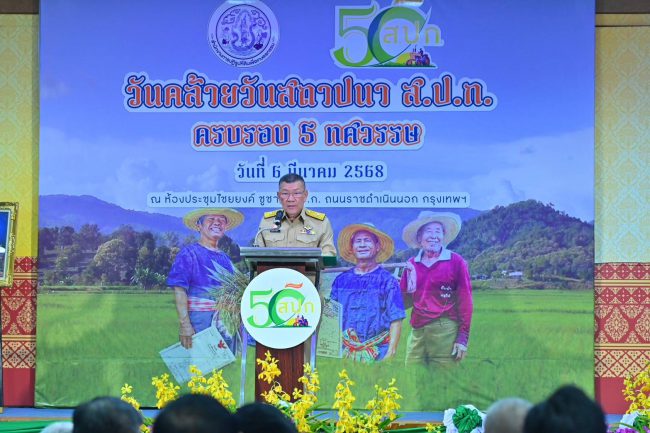 วันที่ 6 มีนาคม 2568 นายอิทธิ ศิริลัทธยากร รัฐมนตรีช่วยว่าการกระทรวงเกษตรและสหกรณ์ เป็นประธานพิธีงานวันคล้ายวันสถาปนาสำนักงานการปฏิรูปที่ดินเพื่อเกษตรกรรม (ส.ป.ก.) ครบรอบ 50 ปี โดยปีนี้จัดขึ้นภายใต้แนวคิด “5 ทศวรรษ ส.ป.ก. ก้าวที่มั่นคง สู่อนาคตที่ยั่งยืน” โดยมีนายเศรษฐเกียรติ กระจ่างวงษ์ เลขาธิการสำนักงานการปฏิรูปที่ดินเพื่อเกษตรกรรม ผู้บริหารและเจ้าหน้าที่ ส.ป.ก. เข้าร่วมอย่างพร้อมเพรียง ณ สำนักงาน ส.ป.ก. ถนนราชดำเนินนอก กรุงเทพฯ