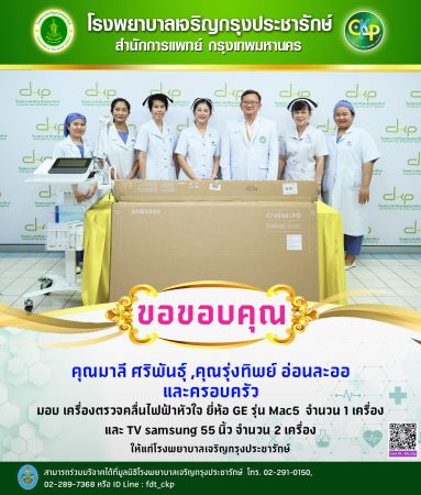 โรงพยาบาลเจริญกรุงประชารักษ์รับมอบ เครื่องตรวจคลื่นไฟฟ้า และ TV จากผู้มีจิตศรัทธา