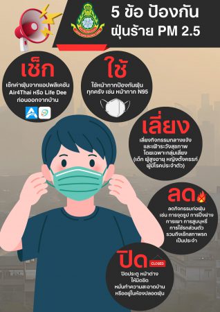 แพทย์ทหาร แนะวิธีป้องกันฝุ่น PM 2.5 ยึดหลัก “หลีก ปิด ใช้ เลี่ยง ลด”