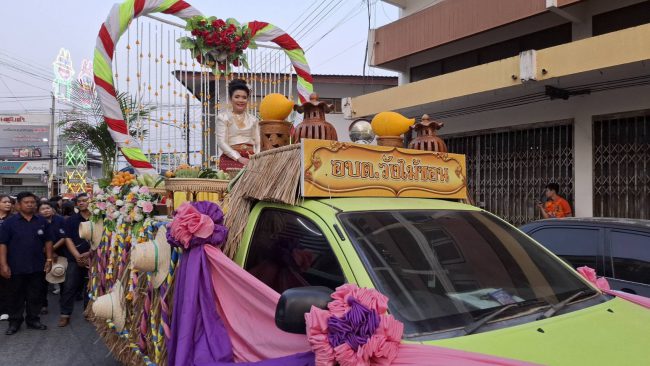 เมื่อเวลา17.30 น.วันที่26มีนาคม2568 ณ ถนนหน้าทางเข้าที่ว่าการอำเภอสวรรคโลกจังหวัดสุโขทัย นายนพฤทธิ์ ศิริโกศล ผู้ว่าราชการจังหวัดสุโขทัย และ นาย เอนก วิทยาพิรุณทอง นายอำเภอสวรรคโลกพร้อมหัวหน้าส่วนราชการ แขกผู้มีเกียรติได้นั่งชมขบวนประเพณีและวัฒนธรรมขบวนรถที่ตกแต่งประดับประดาด้วยผลไม้ในท้องถิ่นและสาวงามธิดาชาวสวน พร้อมการแสดงร่ายรำการละเล่นประเพณีวัฒธรรมด้วยรวม10กว่าขบวนที่โชว์ผ่านตลาดเทศบาลเมืองสวรรคโลก จากนั้น ผู้ว่าราชการจังหวัดเป็นประธานพิธีเปิดงาน หมากม่วงหมากปรางของดีศรีสวรรคโลก ประจำปี2568 ณ เวทีกลางหน้าที่ว่าการ อำเภอสวรรคโลก โดยมีนายอำเภอสวรรคโลกได้กล่าวรายงานวัตถุประสงค์การจัดงานในครั้งนี้ พร้อมหัวหน้าส่วนงานและประชาชนได้ร่วมพิธีเปิดในครั้งนี้