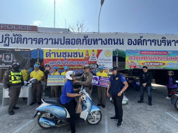 สภ.ห้วยยาง แจกหมวกนิรภัย ให้ประชาชน เพิ่มความปลอดภัยเทศกาลสงกรานต์ 2568