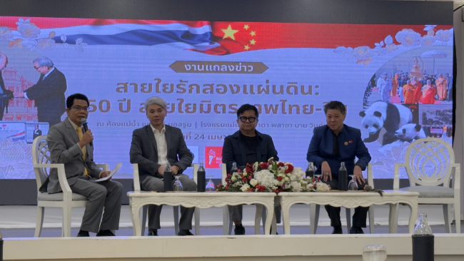- นายกสมาคมมิตรภาพไทย-จีน เปิดใจไขความลับ 50 ปีความสัมพันธ์ไทย-จีนมีความพิเศษเหนือธรรมดา ขณะที่สมาคมผู้สื่อข่าวไทย-จีน มูลนิธิปัญญาวุฒิ ผู้กำกับภาพยนตร์ ผู้ประพันธ์ดนตรี มุ่งมั่นเจียระไนภาพยนตร์สายใยรักสองแผ่นดิน สื่อสารความประทับใจ และความซาบซึ้งใจแก่มหาชน