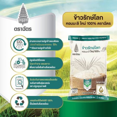 ข้าวตราฉัตร เปิดตัว “ข้าวรักษ์โลก” ข้าวหอมมะลิใหม่ 100% คาร์บอนต่ำ รายแรกในไทย
