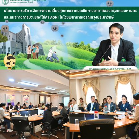 รองผู้อำนวยการโรงพยาบาล (ฝ่ายการแพทย์)ร่วมแระชุมนำเสนอ “นโยบายการบริหารจัดการความเสี่ยงสุขภาพจากมลพิษทางอากาศของกรุงเทพมหานครและแนวทางการประยุกต์ใช้ค่า AQHI ในโรงพยาบาลเจริญกรุงประชารักษ์”