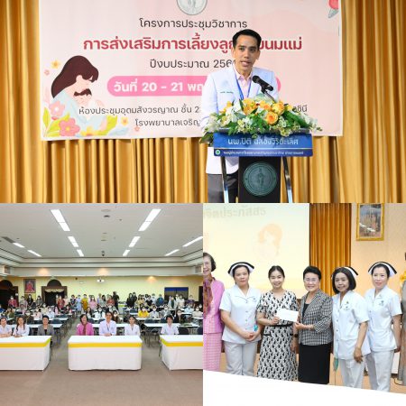 นพ.ปิติ ฉลองวิริยะเลิศ รองผู้อำนวยการโรงพยาบาลเจริญกรุงประชารักษ์ (ฝ่ายการแพทย์) ประธานเปิดโครงการประชุมวิชาการการส่งเสริมการเลี้ยงลูกด้วยนมแม่ ระหว่างวันที่ 20 – 21 พฤษภาคม 2568 ณ ห้องประชุมอุดมสังวรญาณ ชั้น 23 อาคาร 72 พรรษา มหาราชินี ในการอบรมครั้งนี้ เพื่อให้บุคลากรได้ตระหนักถึงความสำคัญเหล่านี้ และได้ดำเนินการตามบันได 10 ขั้น สู่ความสำเร็จในการเลี้ยงลูกด้วยนมแม่มาโดยตลอด เพื่อเพิ่มพูนความรู้ ทักษะตลอดจนสร้างทัศนคติที่ดีต่อการเลี้ยงลูกด้วยนมแม่แก่บุคลากรที่เกี่ยวข้องอย่างต่อเนื่อง และได้รับเกียรติจากวิทยากรผู้ทรงคุณวุฒิจาก มูลนิธิศูนย์นมแม่แห่งประเทศไทย สถาบันแห่งชาติเพื่อการพัฒนาเด็กและครอบครัว มหาวิทยาลัยมหิดล คณะพยาบาลศาสตร์ มหาวิทยาลัยมหิดล นักวิชาการอิสระ และวิทยากรภายในโรงพยาบาลเจริญกรุงประชารักษ์