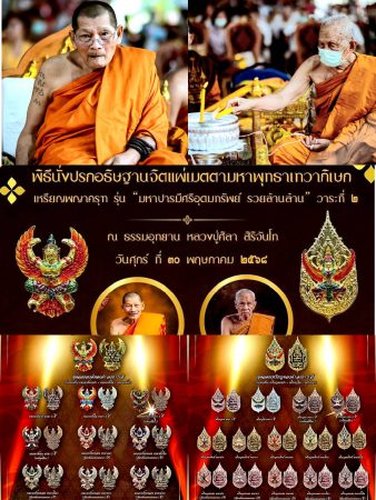 “หลวงปู่ศิลา” และ “หลวงปู่เวิน” ร่วมอธิษฐานจิตปลุกเสกวัตถุมงคล “พญาครุฑ รุ่น มหาปารมี ศรีอุดมทรัพย์ รวย ล้าน ล้าน” วาระที่ ๒.”สราลี” และ “วุฒิศักดิ์” ร่วมพิธีด้วย