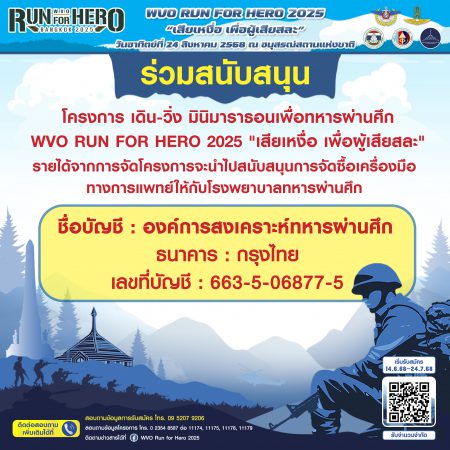 ติดตามข้อมูลเพิ่มเติมที่ Facebook: WVO RUN FOR HERO 2025