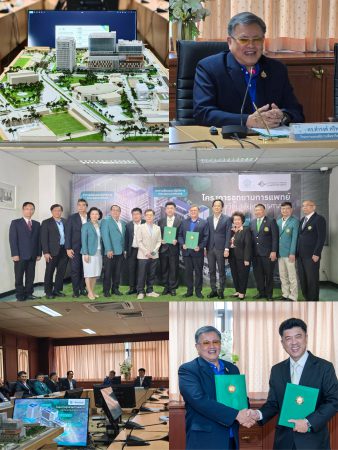 เปิดหน้าประวัติศาสตร์! มหาวิทยาลัยเกษตรศาสตร์ ลงนามสัญญาจ้างก่อสร้างอาคารเรียนและปฏิบัติการคณะแพทยศาสตร์ โครงการอุทยานการแพทย์ มหาวิทยาลัยเกษตรศาสตร์ เตรียมก่อสร้างในพื้นที่มหาวิทยาลัยเกษตรศาสตร์ บางเขน ชูจุดเด่นด้านสภาพแวดล้อม และส่งเสริมกิจกรรมการเรียนรู้และวิจัยขั้นสูงด้านเวชศาสตร์การเกษตรและชีวนวัตกรรม