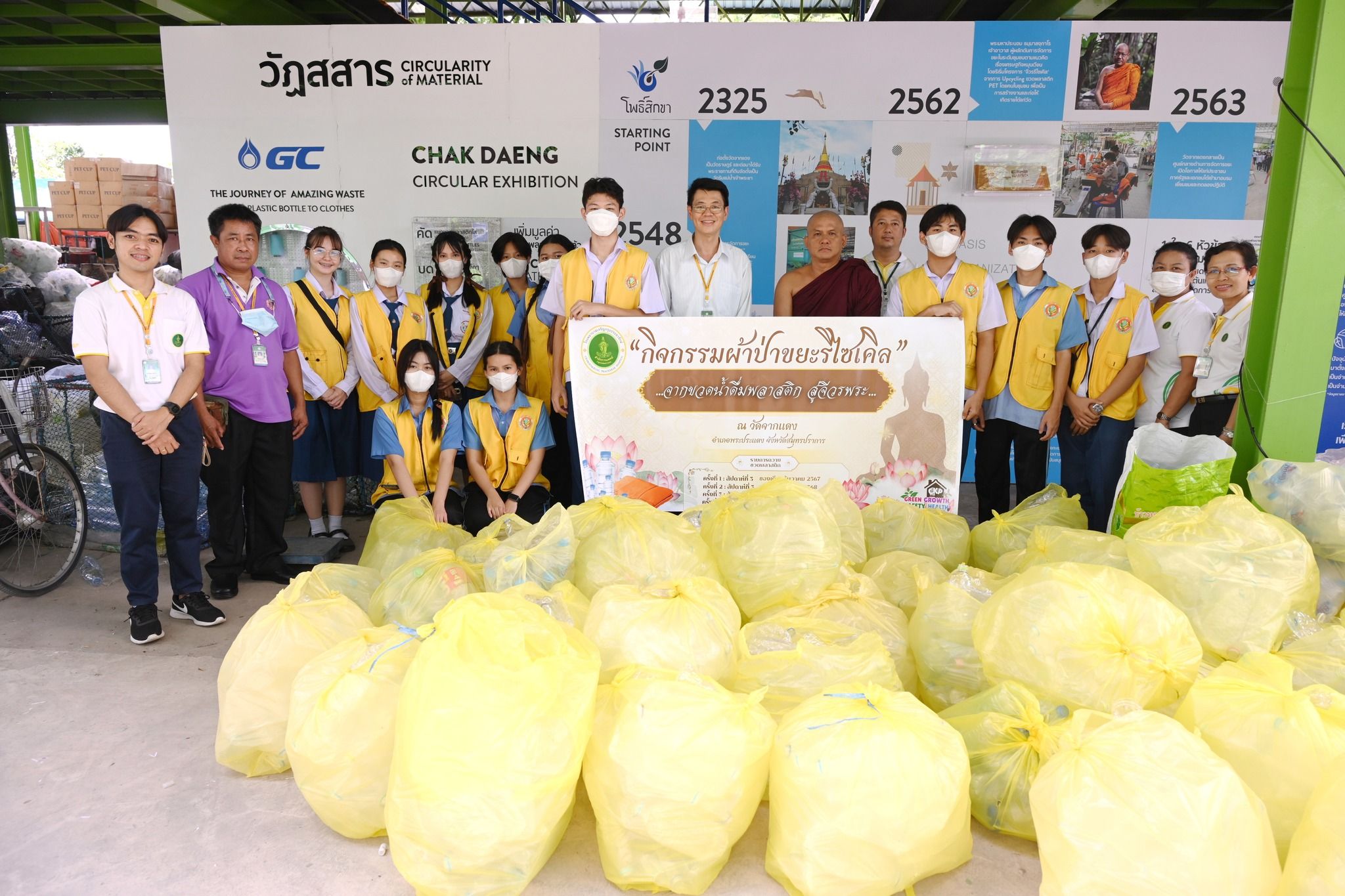 • “ผ้าป่าขยะรีไซเคิล” ส่งมอบขวดน้ำดื่มพลาสติกที่ผ่านการคัดแยกแล้วให้กับวัด เพื่อนำไปผลิตเป็นจีวรพระ