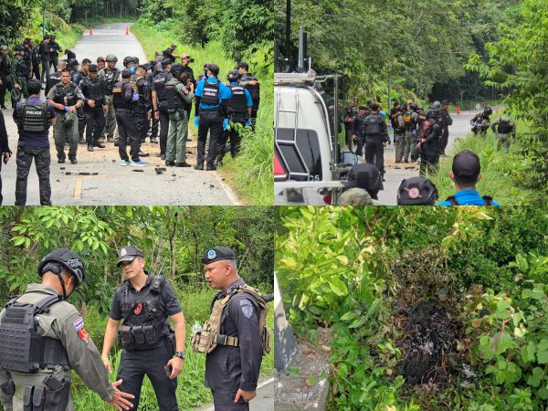 เมื่อเวลา 11.00 น. วันที่ 13 ก.ค.68 พ.ต.อ.ดิเรก โฉมยงค์ รอง ผบก.ภ.จว.นราธิวาส พ.ต.อ.นรินทร์ ช่วยสุข ผกก.สภ.เจาะไอร้อง พ.อ.สิทธิชัย บำรุงเขต ผบ.นปพ.ร่วม จ.นราธิวาส พ.อ.ปัญจพล ทรัพย์บวร ผบ.ฉก.ทพ.48 เจ้าหน้าที่ชุดเก็บกู้และทำลายวัตถุระเบิด นปพ.กองกำกับการตำรวจภูธร จ.นราธิวาส เจ้าหน้าที่กองพิสูจน์หลักฐาน จ.นราธิวาส และเจ้าหน้าที่ที่เกี่ยวข้อง ร่วมเดินทางตรวจสอบเหตุคนร้ายจุดชนวนระเบิดรถยนต์กระบะของเจ้าหน้าที่ทหารพราน กองร้อยทหารพรานที่ 4802 ริมถนนสายยานิง – เจาะเกาะ ช่วงบริเวณบ้านกือรง ม.3 ต.จวบ อ.เจาะไอร้อง ขณะที่เจ้าหน้าที่ทหารร่วมกับกำลัง 3 ฝ่าย เดินทางกลับจากตรวจสอบเหตุคนร้ายลอบวางเพลิงและทำลายกล้องวงจรปิดของเจ้าหน้าที่ตำรวจ สภ.เจาะไอร้อง ได้รับความเสียหาย จำนวน 2 จุด เหตุเกิดเมื่อเวลา 15.05 น ของวันที่ 12 ก.ค. 68 ที่ผ่านมา แต่ไม่มีผู้ใดได้รับบาดเจ็บหรือเสียชีวิต แต่รถยนต์กระบะได้รับความเสียหาย