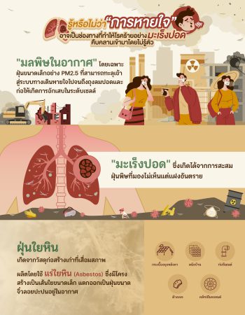 ในวันที่เราทุกคนกำลังตื่นตัวกับเรื่องฝุ่น PM2.5 อย่าลืมว่ายังมี “ฝุ่นใยหิน” ที่อาจอันตรายยิ่งกว่าแฝงอยู่ใกล้ตัว และไม่มีอาการเตือนใด ๆ จนกว่าจะสายไป หากเรายังไม่เปลี่ยนพฤติกรรมหรือระบบการใช้วัสดุก่อสร้างที่ปลอดภัยกว่า อนาคตของเราและคนที่เรารักอาจต้องเผชิญกับโรคร้ายจากอากาศที่เราเคยคิดว่าบริสุทธิ์