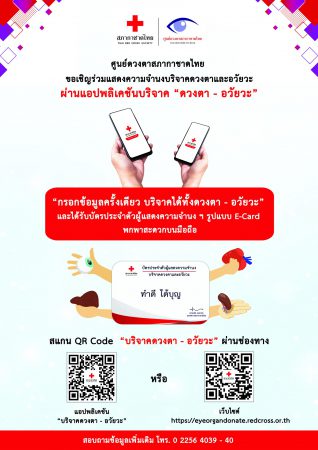 สำหรับผู้ที่สนใจสามารถร่วมแสดงความจำนงบริจาคดวงตาให้แก่สภากาชาดไทย ได้ 2 ช่องทาง ดังนี้ แอปพลิเคชัน “บริจาคดวงตา – อวัยวะ” และ เว็บไซต์ https://eyeorgandonate.redcross.or.th