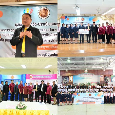 การดำเนินโครงการ “อาชีวศึกษาสร้างคนดี มีอาชีพ” มูลนิธิ ดร.กำจัด ปราณี มงคลกุล ได้คัดเลือกนักเรียน นักศึกษาที่เรียนดี ฐานะยากจน ความประพฤติดี โดยมอบให้วิทยาลัยในสังกัดทั้ง 7 แห่ง คัดเลือกคนที่มีคุณสมบัติจำนวนวิทยาลัยละ 7 คน เพื่อรับทุนการศึกษามูลค่าทุนละ 5,000 บาท รวมเป็นเงิน 245,000 บาท โดยมีนางสาวสุพัฒรา ขุนภักดี นักศึกษาสาขาวิชาเขียนแบบเครื่องกล เป็นตัวแทนกล่าวขอบคุณ จากนั้นได้บรรยายพิเศษเรื่องชีวิตการเรียนรู้ ได้แก่การพัฒนา การดำรงชีวิต (การทำงาน) ให้ประสบความสำเร็จ ปลอดภัยและมีความสุข (ยั่งยืน) ซึ่งในชีวิตต้องประกอบด้วย งาน สังคม เพื่อน ครอบครับ สุขภาพ ซึ่งต้องทำการสร้างสมดุลให้ทุกสิ่ง ไม่มากเกิน และไม่น้อยไป โดยใช้ร่วมกับ ธรรมะวิถีเซน ซึ่งถ้าเรื่องใดเกิดปัญหา อุปสรรคในการทำงาน อาจมาจากเรามองปัญหาระดับตัวเรา ไม่ได้มองปัญหาจากมุมที่สูง เหมือนการทำงานล่วงหน้าเพื่อไม่ให้ปัญหาที่คาดว่าจะเกิดนั้นเกิด ในอนาคตเยาวชนต้องเรียนรู้สิ่งใหม่ เช่น AI / Digital / Technology ที่จะเข้ามามีบทบาทในการดำรงชีวิต และเกี่ยวข้องกับเราตั้งแต่ปัจจุบันรวมถึงอนาคต ขอให้นักเรียน นักศึกษาตลอดจนครู อาจารย์ ผู้บริหารให้ความสำคัญ ใส่ใจ และพัฒนาตัวเองให้เท่าทันอย่างต่อเนื่อง