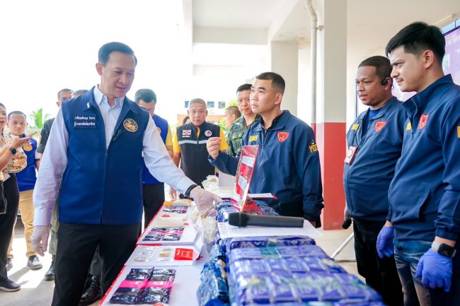 เมื่อเวลา 10.00 น. วันที่ 24 กรกฎาคม 2568 ที่กองกำกับการตำรวจภูธรจังหวัดนราธิวาส ตำบลโคกเคียน อำเภอเมืองนราธิวาส จังหวัดนราธิวาส ว่าที่ร้อยตรี ตระกูล โทธรรม ผู้ว่าราชการจังหวัดนราธิวาส พร้อมด้วย พล.ท.กฤษฎา แก้วจันดี รอง ผบช.ภ.9 , พ.ต.อ.กีรติ แวยูโซ๊ะ รอง ผบก.ภ.จว.นราธิวาส และเจ้าหน้าที่ที่เกี่ยวข้อง ร่วมแถลงข่าวการจับกุมยาเสพติดในพื้นที่จังหวัดนราธิวาส