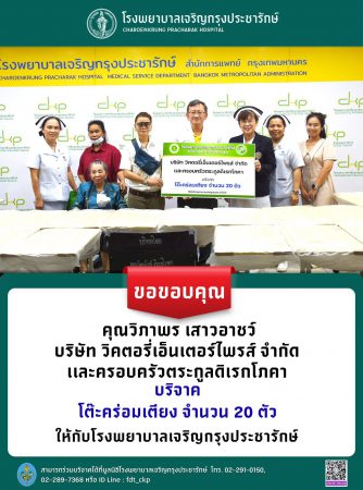 โรงพยาบาลเจริญกรุงประชารักษ์รับมอบโต๊ะคร่อมเตียง เพื่อสนับสนุนการดูแลผู้ป่วยในโรงพยาบาล