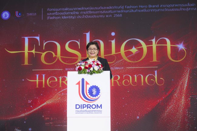 วันที่ 4 สิงหาคม 2568 กรมส่งเสริมอุตสาหกรรม หรือ “ดีพร้อม” จัดกิจกรรมนำเสนอแผนการพัฒนาแบรนด์และผลิตภัณฑ์ ภายใต้กิจกรรม “การพัฒนาภาพลักษณ์แบรนด์และผลิตภัณฑ์ สู่ Fashion Hero Brand” ในกลุ่มอุตสาหกรรมเสื้อผ้าและเครื่องแต่งกายไทย ซึ่งเป็นส่วนหนึ่งของโครงการ “ส่งเสริมภาพลักษณ์สินค้าแฟชั่นจากทุนทางวัฒนธรรมไทยสู่สากล (Fashion Identity)” ประจำปีงบประมาณ พ.ศ. 2568 โดยมีผู้ประกอบการที่ผ่านการคัดเลือกเข้าร่วมโครงการจำนวน 26 กิจการ เข้ารับวุฒิบัตร พร้อมนำเสนอแผนการพัฒนาแบรนด์และผลิตภัณฑ์ ที่ได้รับการอบรมและคำปรึกษาเชิงลึกจากผู้เชี่ยวชาญ ตลอดระยะเวลาโครงการ