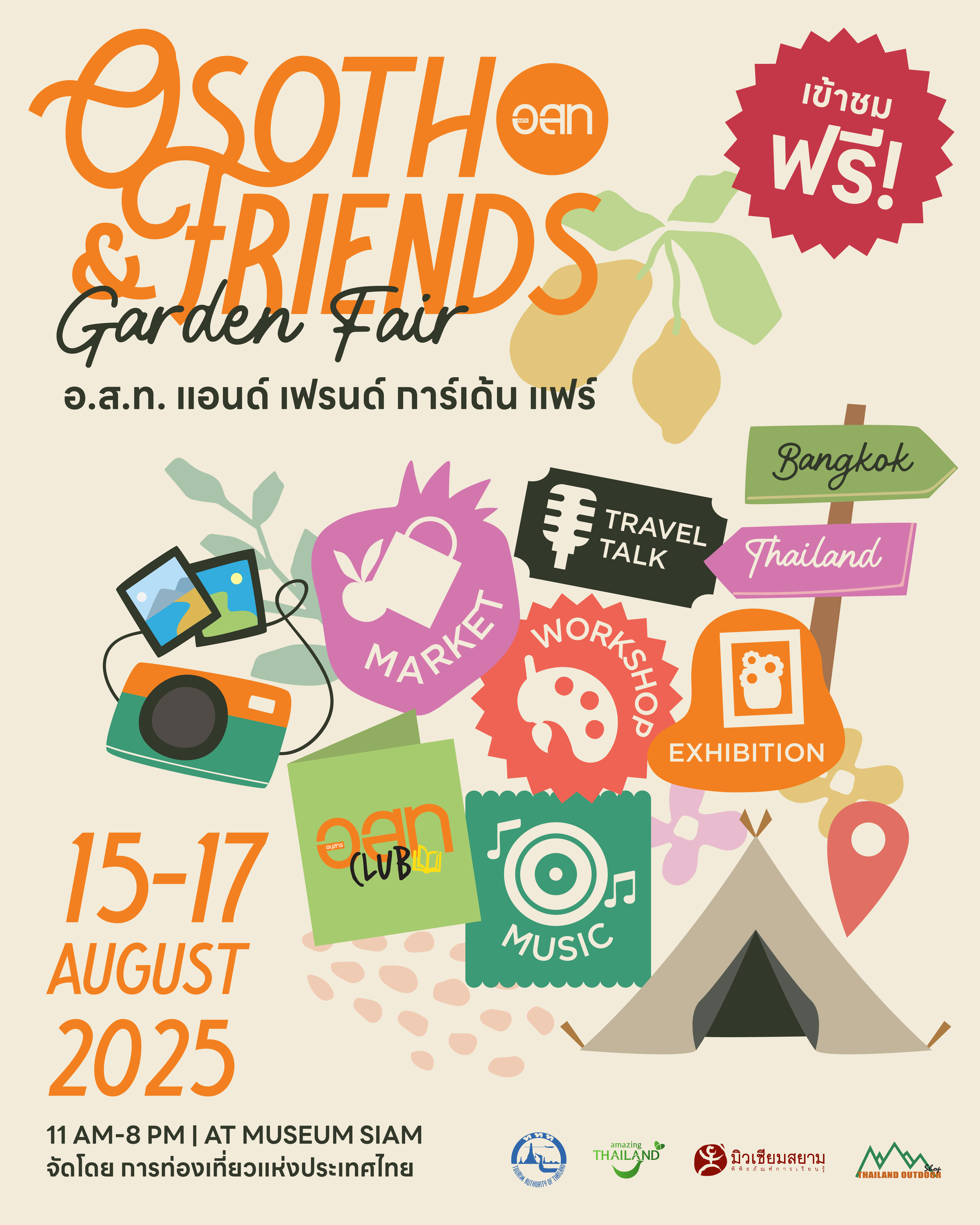 วันที่ 15–17 สิงหาคม 2568 ณ มิวเซียมสยาม (ใกล้ MRT สนามไชย ทางออก 1 ) ครบจบกิน-ช้อป-เที่ยว เข้าชมฟรี ไม่มีค่าใช้จ่าย ภายในงานแบ่งออกเป็น 6 โซนที่ไม่ว่าโซนไหนก็ไม่ควรพลาด นอกจากนี้ยังได้แบ่งปันประสบการณ์ใหม่ๆ ในกิจกรรมสนุกๆ จาก “เพื่อน” ของ อ.ส.ท. ไม่ว่าจะเป็นสื่อด้านการท่องเที่ยว กลุ่มคนรักธรรมชาติ แบรนด์ที่ขับเคลื่อนการท่องเที่ยวยั่งยืน และหน่วยงานภาคีต่างๆ เช่น อ.ส.ท. Club, 1672 Travel Buddy เป็นต้น