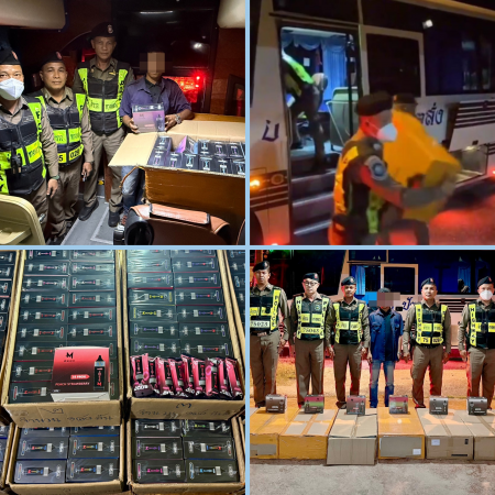 ตำรวจทางหลวง จับหนุ่มขับรถมินิบัส รับจ้างขนบุหรี่ไฟฟ้าเป็นรายได้เสริม 8 ลัง 1,440 ชิ้น