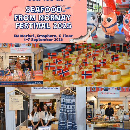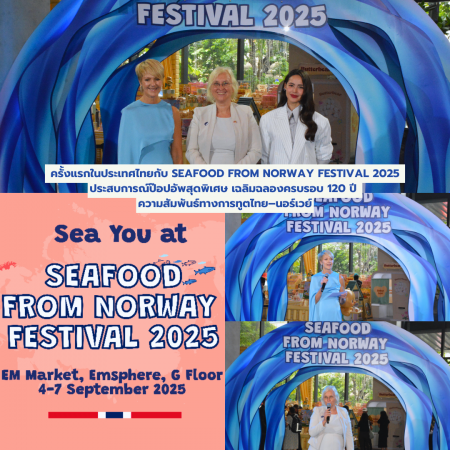 Seafood from Norway Festival 2025 ป๊อปอัพสุดยิ่งใหญ่ครั้งแรกในประเทศไทย พร้อมนำทุกท่านดำดิ่งสู่โลกแห่งอาหารทะเลจากน้ำทะเลที่เย็นและใสสะอาดของนอร์เวย์ ออกแบบมาเพื่อกระตุ้นประสาทสัมผัสและสร้างความเชื่อมโยงระหว่าง Seafood from Norway และผู้บริโภคชาวไทย ถ่ายทอดเรื่องราวของธรรมชาติ ผู้คน และอนาคตที่มีร่วมกัน พร้อมกิจกรรมโซนอินเทอร์แอคทีฟ ลิ้มลองเมนูสุดเอ็กซ์คลูซีฟ และบูธจากพาร์ทเนอร์ เพื่อร่วมเฉลิมฉลองครบรอบ 120 ปี ความสัมพันธ์ทางการทูตไทย–นอร์เวย์ จัดขึ้นระหว่างวันที่ 4–7 กันยายน 2568 เวลา 10.00–22.00 น. ณ EM MARKET ห้างสรรพสินค้า EMSPHERE กรุงเทพฯ