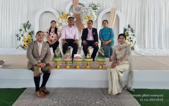 วันที่ 11 กันยายน 2568 นายบุญเลิศ พุทธเจริญ อุปนายกภาคเหนือสมาคมหนังสือพิมพ์แห่งประเทศไทย/เจ้าของไร่มะขามหวาน “ชนิกา” บึงสามพัน เป็นประธานในพิธีฉลองมงคลสมรส ระหว่าง นางสาวกนกวรรณ ขันเขต (อิ๋ว) และMr.ONG KOK KWANG(Alvin) บุตรีของนางนภาพร ขันเขต( เจ๊เหมียว) กับนายสุรพล ก้องเพชรศักดิ์ (ตี๋)ที่ปรึกษาสมาคม หนังสือพิมพ์ส่วนภูมิภาคแห่งประเทศไทย, โดยมีแขกผู้มีเกียรติร่วมแสดงความยินดี อาทิ : นางสุพัตราภรณ์ ตั้งประเสริฐศรี นายกเทศ มนตรีเทศบาลตำบลซับสมอทอด, นายสมัคร โชติวรรณ นายกสมาคมสื่อมวลชนเพชรบูรณ์, นายทวีศักดิ์ อินทรานุกูล อดีตนายกเทศมนตรีเทศบาลตำบลซับสมอทอด, พร้อมแขกผู้มีเกียรติ เพื่อนเจ้าบ่าวเจ้าสาว มาร่วมแสดงความยินดีในงานมงคลสมรสในครั้งนี้ เป็นจำนวนมาก ณ โดมมูลนิธิสว่างบึงสามพันธรรมสถาน