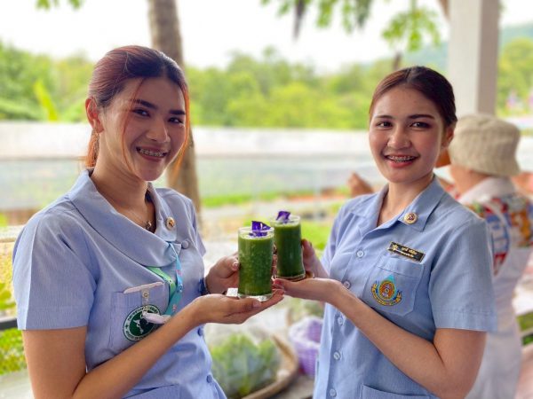 เมื่อเร็วๆนี้ นายสุรพัฒน์ หมื่นศรีรัชต์ ประธานวิสาหกิจชุมชนผู้ผลิตปุ๋ยอินทรีย์ชีวภาพ อำเภอภักดีชุมพล จังหวัดชัยภูมิ เปิดบ้านต้อนรับคณะพยาบาลจากโรงพยาบาลชัยภูมิ ที่เดินทางมาเยี่ยมชมการปลูกผักปลอดสารในแปลงสาธิต พร้อมเรียนรู้มาตรฐานการทำเกษตรที่ดี (GAP) และได้ร่วมชิมสมูทตี้เคล–ผักสลัดสดใหม่ ก่อนเก็บผลผลิตกลับไปลิ้มรสที่บ้าน