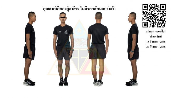 5. สถานที่ทดสอบและคัดเลือก : วันที่ 6 – 9 ตุลาคม 2568 ณ กองพันจู่โจม กรมรบพิเศษที่ 3 ตำบลเขาสามยอด อำเภอเมือง จังหวัดลพบุรี